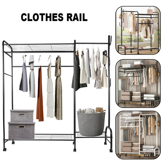 Clothes Rack Heavy Duty Coat Shelf Double-Rod Hats Clothes Rack With Hooks Hanging Clothe Organizer Floor Hangers Organizer