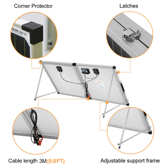 DOKIO 100W/160w/200w 18V Glass Folding Monocrystalline Waterproof Solar Panel with 12V Controller Kit from China