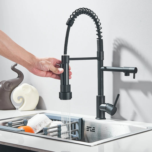 Black Filtered Kitchen Faucet Pure Water Pull Out Brass Sink Faucet Dual Handle Hot&Cold Drinking Water Purified Mixer Taps