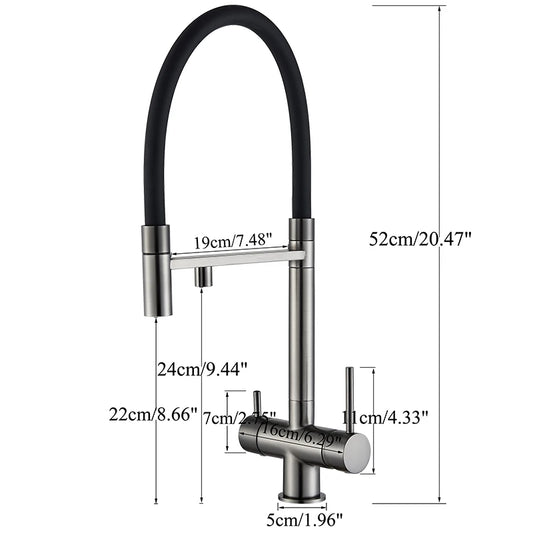 SHBSHAIMY Brushed Nickel Filter Kitchen Faucet Drinking Water Kitchen Tap Deck Mounted Dual Handles 3-Way Hot Cold Water Mixer