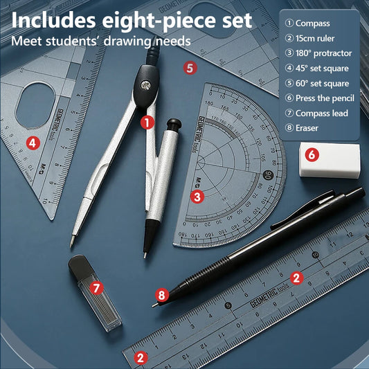 M&G 8-Piece Compass & Ruler Set – Multifunctional Drawing Tools