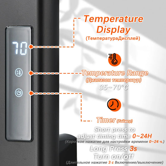 Matte Black Bathroom Electric Heated Towel Rack with Digital Display Touch Thermostatic Dry Towel 304 Stainless Steel Heater