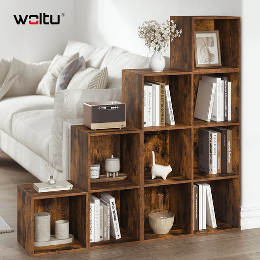 Woltu Vintage Wood Bookcase 6/10 Storage Cubes Bookshelf for Living Room Bedroom Office Freestanding Shelf for Toys Books