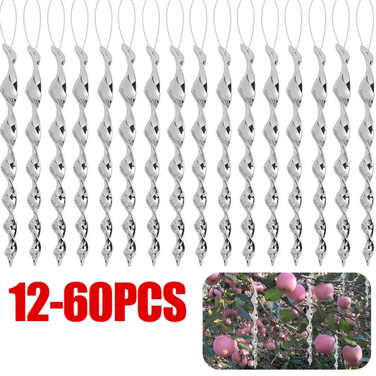 12-60pcs Bird Repellent Reflective Rods 30cm Scare Birds Repeller Wind Spiral Rotating Rod Hanging Ornaments Home Garden Decor