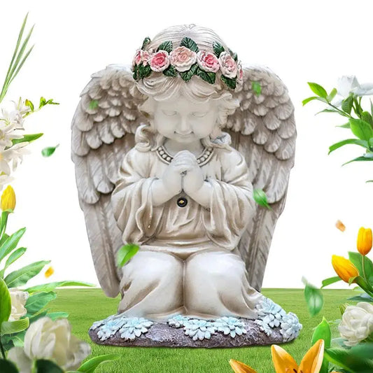 Resin Praying Angel Solar Angel Garden Decor With Solar Lights Waterproof Sculpture Figurine Cemetery Decorations Yard Art