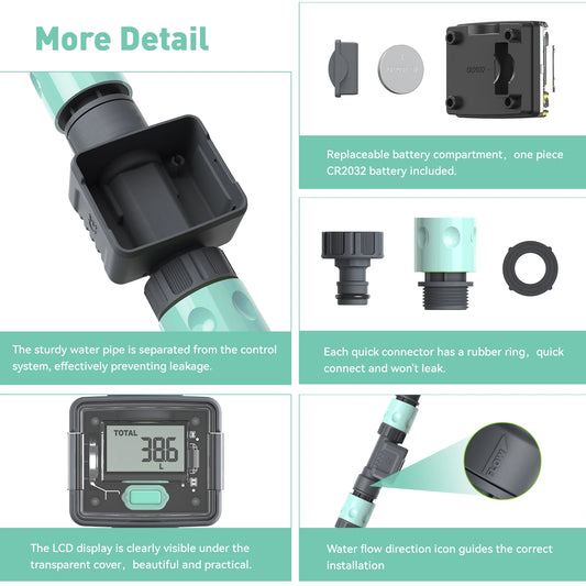 Water Flow Meter Measure Gallon/Liter Consumption and Flow Rate for Outdoor Garden Hose Watering RV Water Tank Filling
