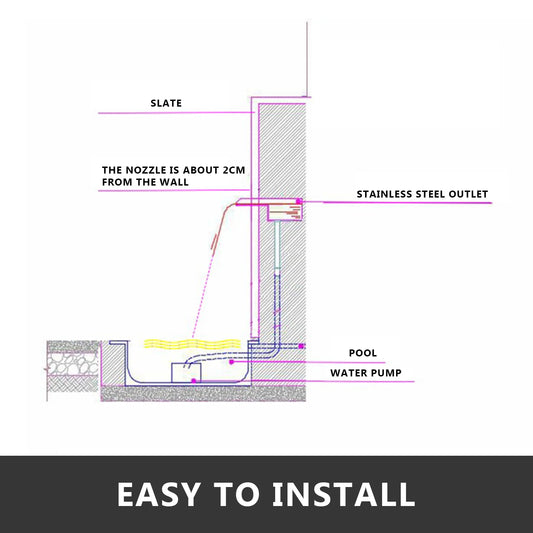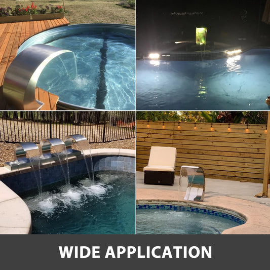 VEVOR Waterfall Pool Fountain Stainless Steel W/ Pipe Connector Spillway Garden Outdoor Pond Rectangular Swimming Pool Fountain