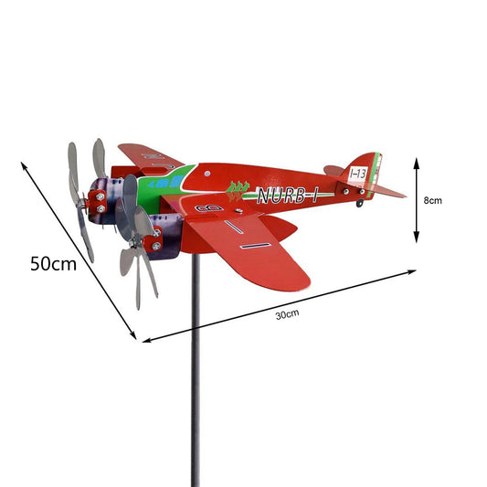 3D Wind Spinner Plane Metal Airplane Weather Vane Plug-in Windmill Outdoor Roof Wind Direction Indicator Ornaments Garden Decor