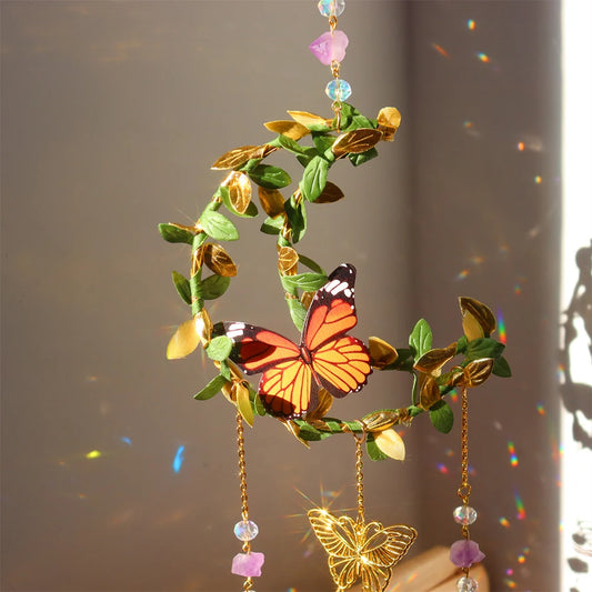 Crystals Wind Chime Star Moon Butterfly Hanging Ornament Sun Catcher Diamond Prisms Rainbow Maker Pendant Home Garden Decor