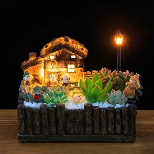Micro Landscape Succulent Plant Flower Pot with Lamp Creative Cactus Planter Bonsai Cachepot Orchid Vase Home Desktop Decor