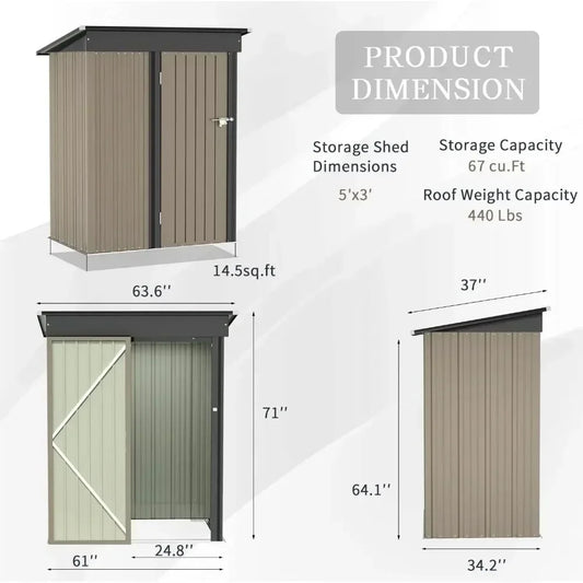 Metal Outdoor Storage Shed 5FT x 3FT, Steel Utility Tool Shed Storage House with Door & Lock, for Backyard Garden Patio Lawn