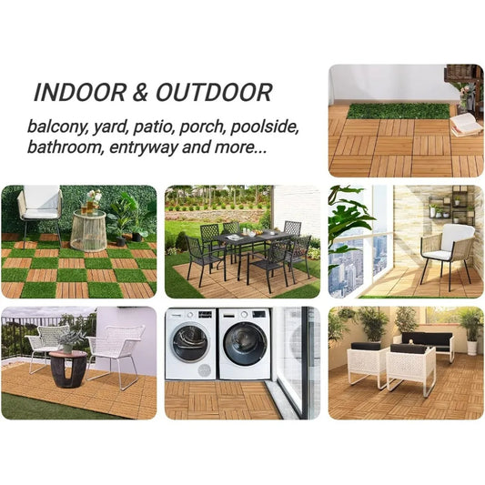 27PCS Interlocking Patio Deck Tiles Outdoor Flooring for Garden Poolside Fir Wood Indoor Natural Wood, Garden Floor Boards