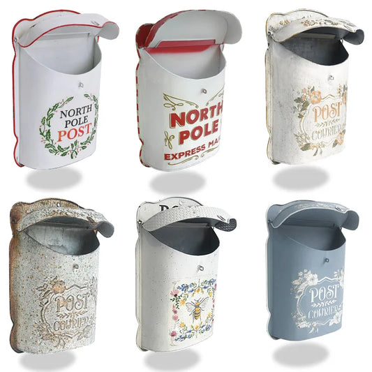 Vintage Outside Mailboxes Letter Box Metal Wall Mounted Post Box Farmhouse Post Decoration Crafts Santa Mailbox Post