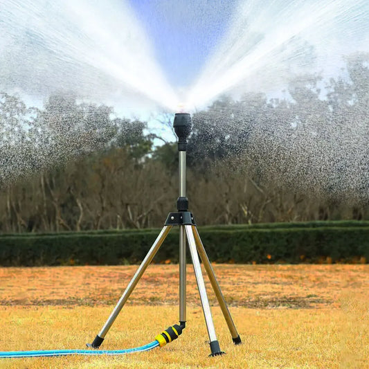 360 Rotary Irrigation Sprinkler Head with Tripod Telescopic Support Automatic Rotating Sprayer Garden Lawn Watering Sprinkler
