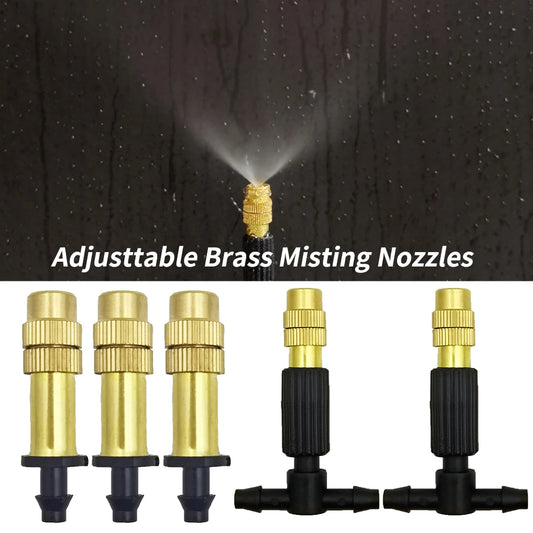 50-1pcs 4/7PVC Outdoor Misting Cooling System Garden Irrigation Watering 1/4'' Brass Atomizer Adjustable Garden Micro Sprinklers