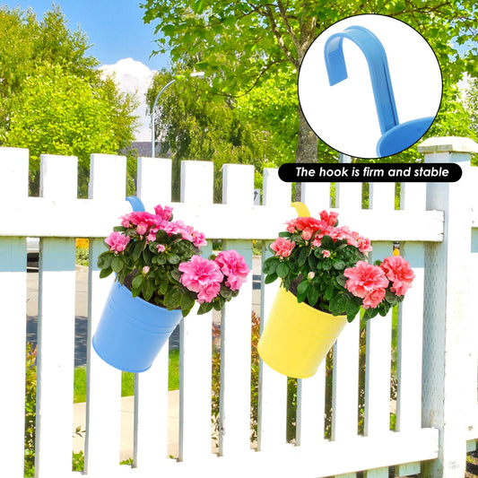 5Pcs Metal Hanging Flower Pots Hook Bucket Garden Planter Pots with Drainage Hole Balcony Garden Office Planter Home Decor