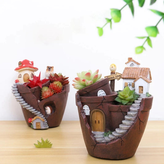 Dropshipping Garden Pot for Succulents Cactus, Creative Farmhouse Planter, Resin Flower Pots Fairy Garden Ornaments Home Decor