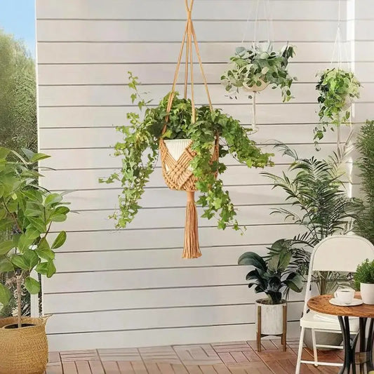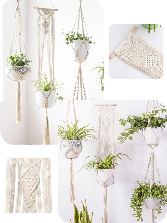 Gardening Green Plant Hanging Basket Cotton Rope Hanger Flower Pot Handmade Macrame Pot Pocket Wall Boho Courtyard Home Decor