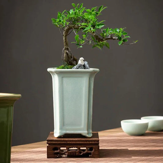 Creative Geyao Ice Crack Chinese Style Orchid Plant Pot Flowerpot Desktop Ornaments Vase Bonsai Container Planter Home Decor