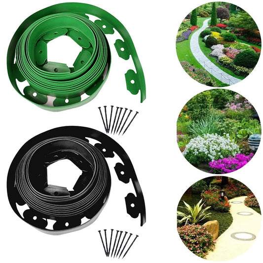 5M/10M Garden Grass Lawn Edge Border Fence With 15 Spikes Path Flexible Lawn Edging Border Fence Outdoor Landscape Garden Decor