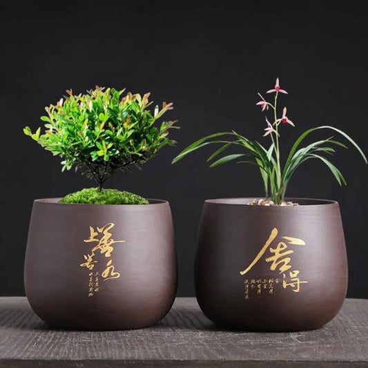 Chinese Style Purple Clay Flower Pot Orchid Plant Container Bonsai Vase Plant Pot with A Hole Home Garden Decor