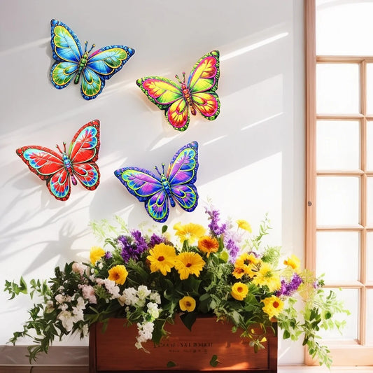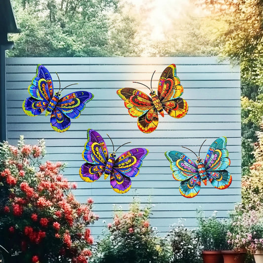 Metal Art Butterfly Wall Decor Colorful Iron Art Butterfly Sculptures Butterfly Hanging Ornaments for Outdoor Home Garden Yard