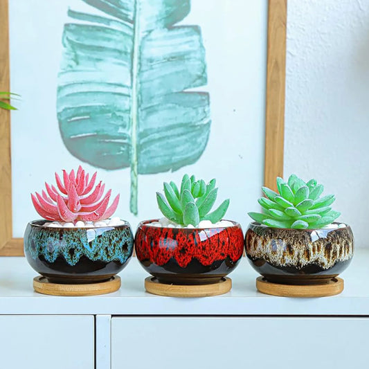6Pc Ceramic Flower Pots Kiln Change Mini Wicker Bonsai Plant Flowerpot Mold Planters For Yard Garden Desktop Decor Flowers Ceram