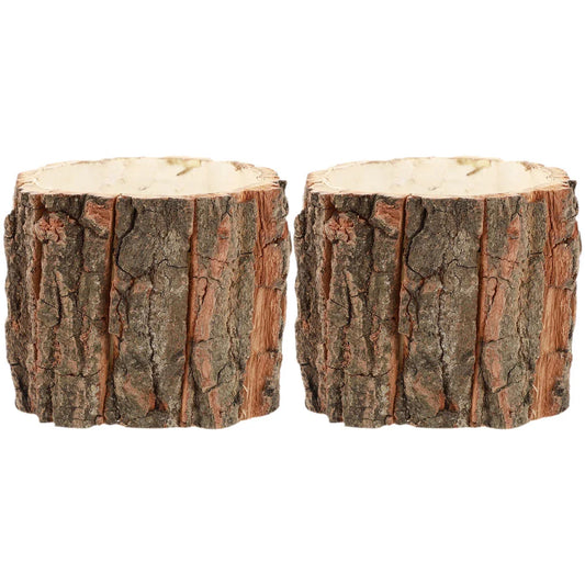 2 Pcs Flower Bucket Planter Log Holder Tree Stump Wood Decor Plant Pots Barrel Planter Garden Supplies Wooden Vase Rustic