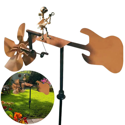 NEW Handmade Metal Drummer Windmill Garden Statue Metal Guitar Wind Spinner Decorative Power Rock Art for Lawn Porch Yard Decor