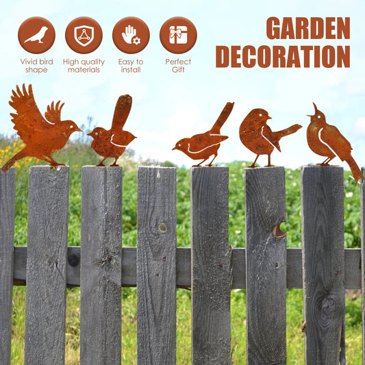 1/5Pcs Rusty Metal Birds Rusty Running Squirrel Decor Metal Art Set Outdoor Garden Animal Silhouette Creative Wrought Iron Decor