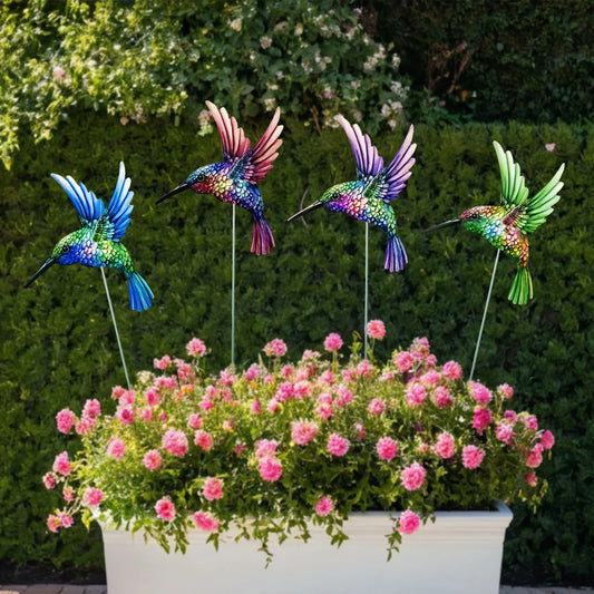 4PCS Metal Hummingbird Stakes Art Sculpture Outdoor Waterproof Iron Ornament Garden/Home Decor Yard Lawn Patio Garden Bird Decor