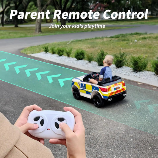 400W Motor Kids Electric Police Car - Remote & White