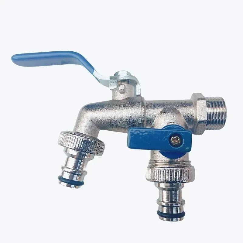 1/2'' 3/4'' Double Head Water Faucet Water Splitter Connector Coupling Adapter Valve Switch Garden Hose Irrigation Tap Joint