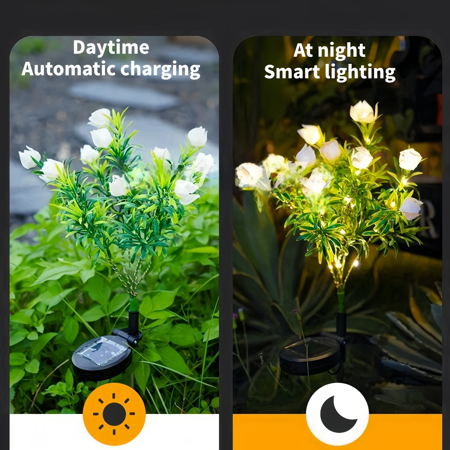 [Waterproof Solar Lights] Solar flower lights are made of durable high-quality waterproof material, can withstand bad weather. It's a great outdoor decoration lighting,you can use it in your garden anywhere you like,it will add beautiful addition to your garden patio,flowerbed,Walkway or lawn