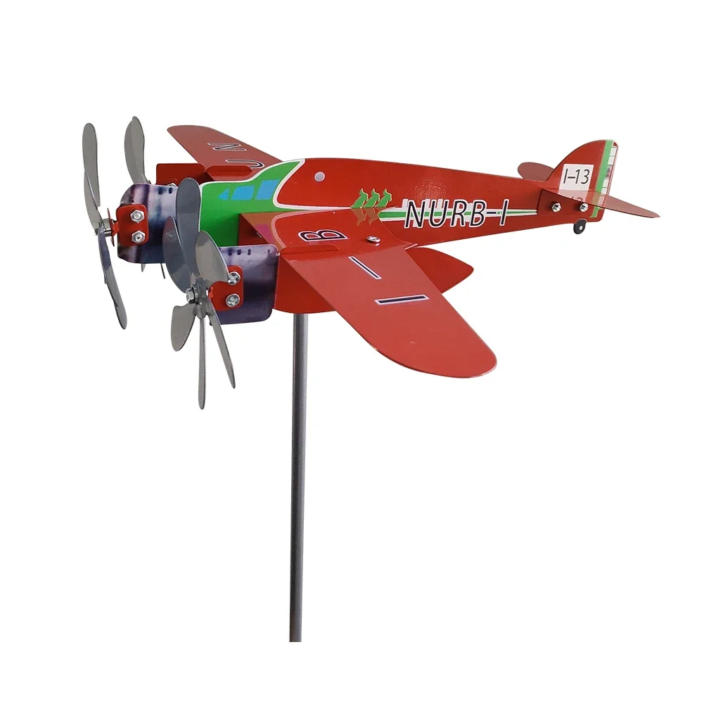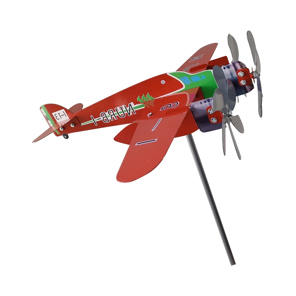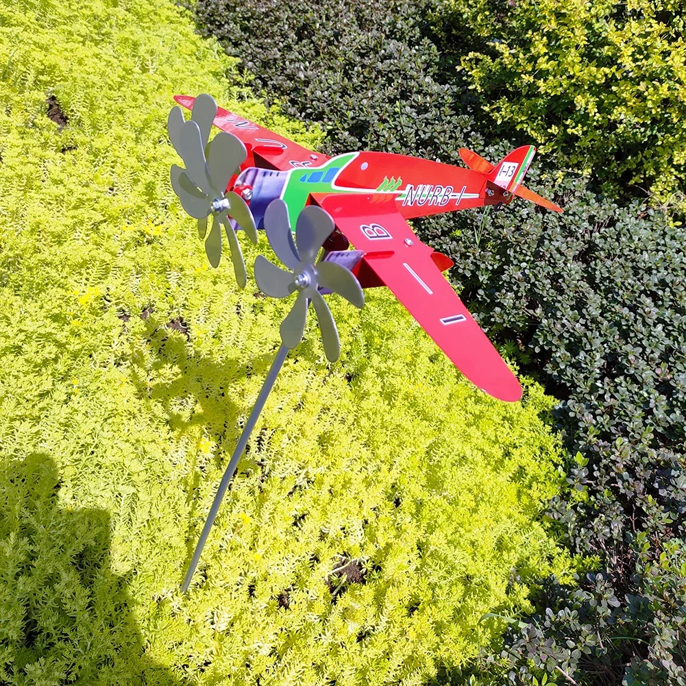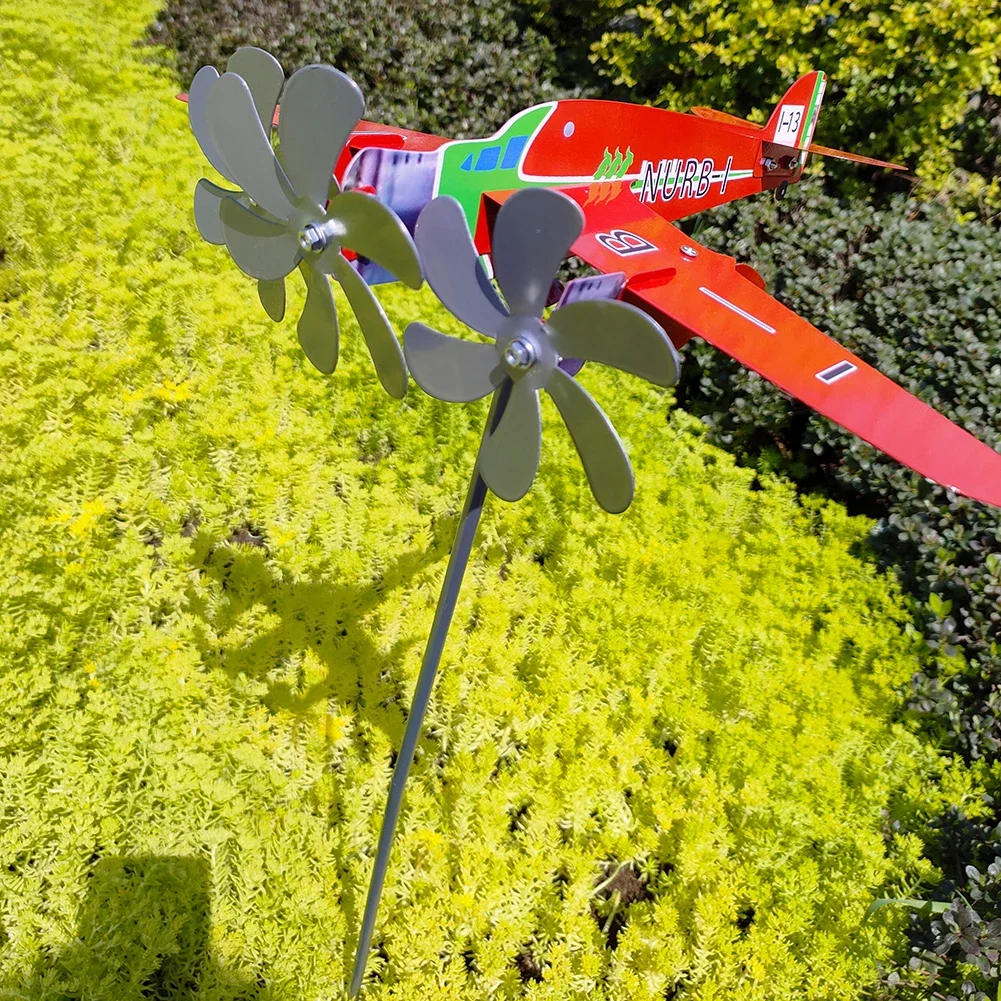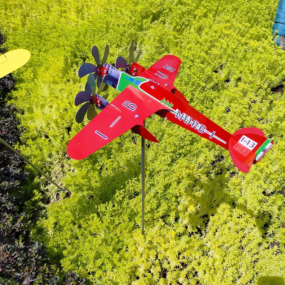 3D Plane Garden Weather Vane Plug Decor Anti-corrosion Metal Airplane Plug-in Windmill Weatherproof Ornaments for Outdoor Garden