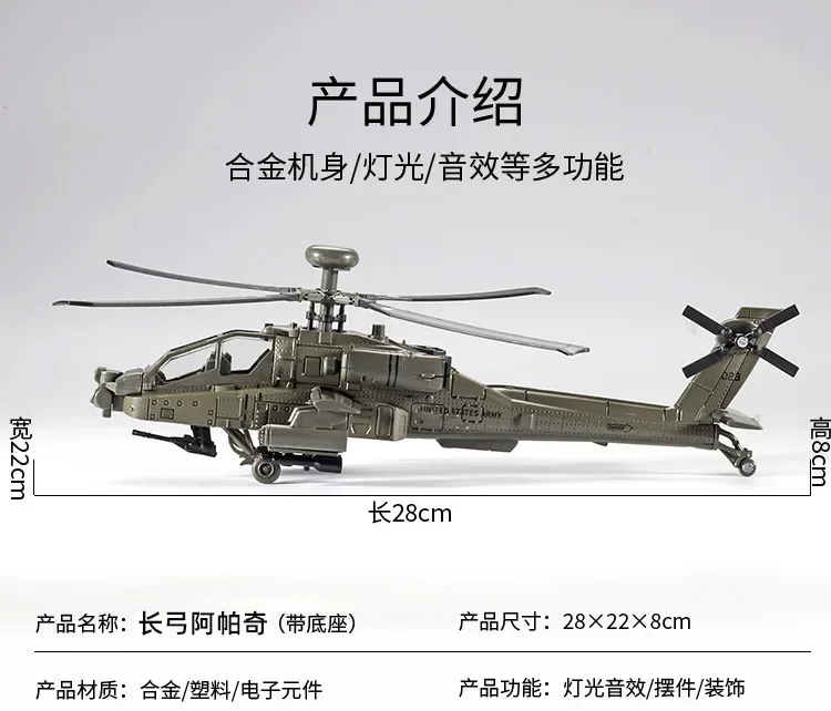 1/32 Scale Apache Helicopter Diecast Alloy Model Collectable Toy Gifts / Collection / Children