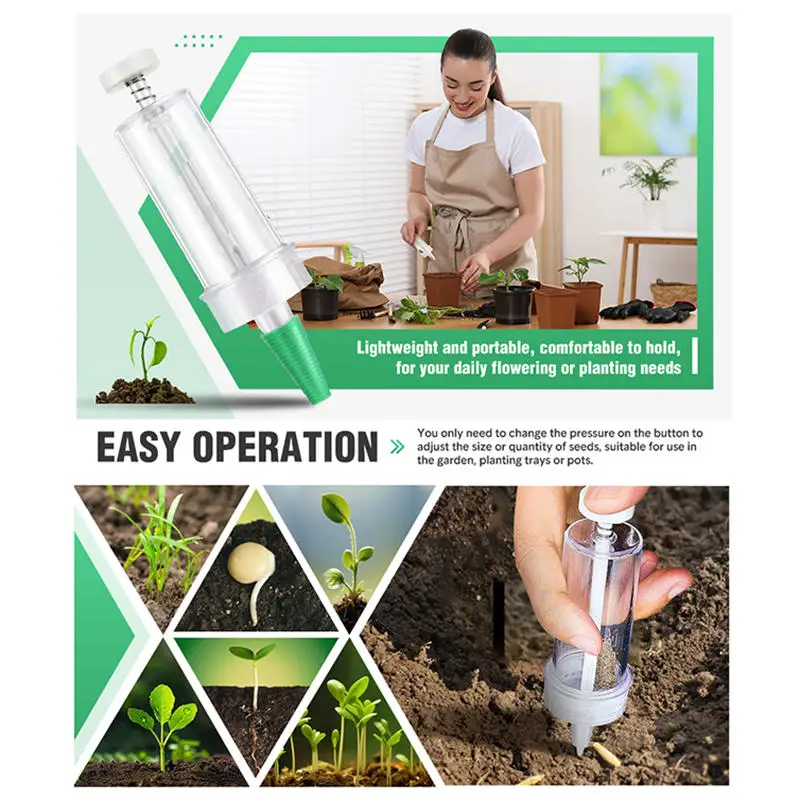 1. [Good Material] This mini sowing seed dispenser is made of premium PS and ABS material, which is sturdy and reusable. It is lightweight and can serve you for a long time.