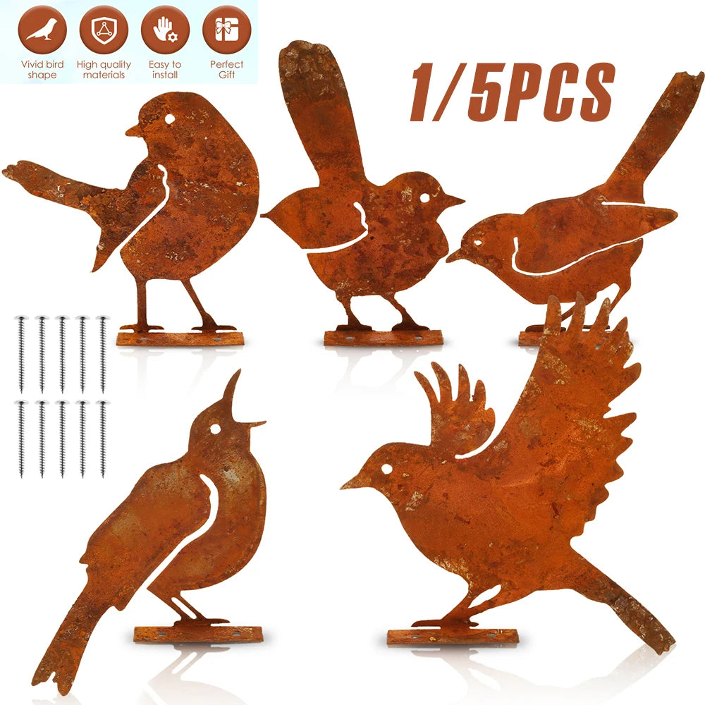 [Ideal Gift] This 5 rusty metal wren bird ornament is suitable for giving to relatives and friends who love birds and decorating gardens.