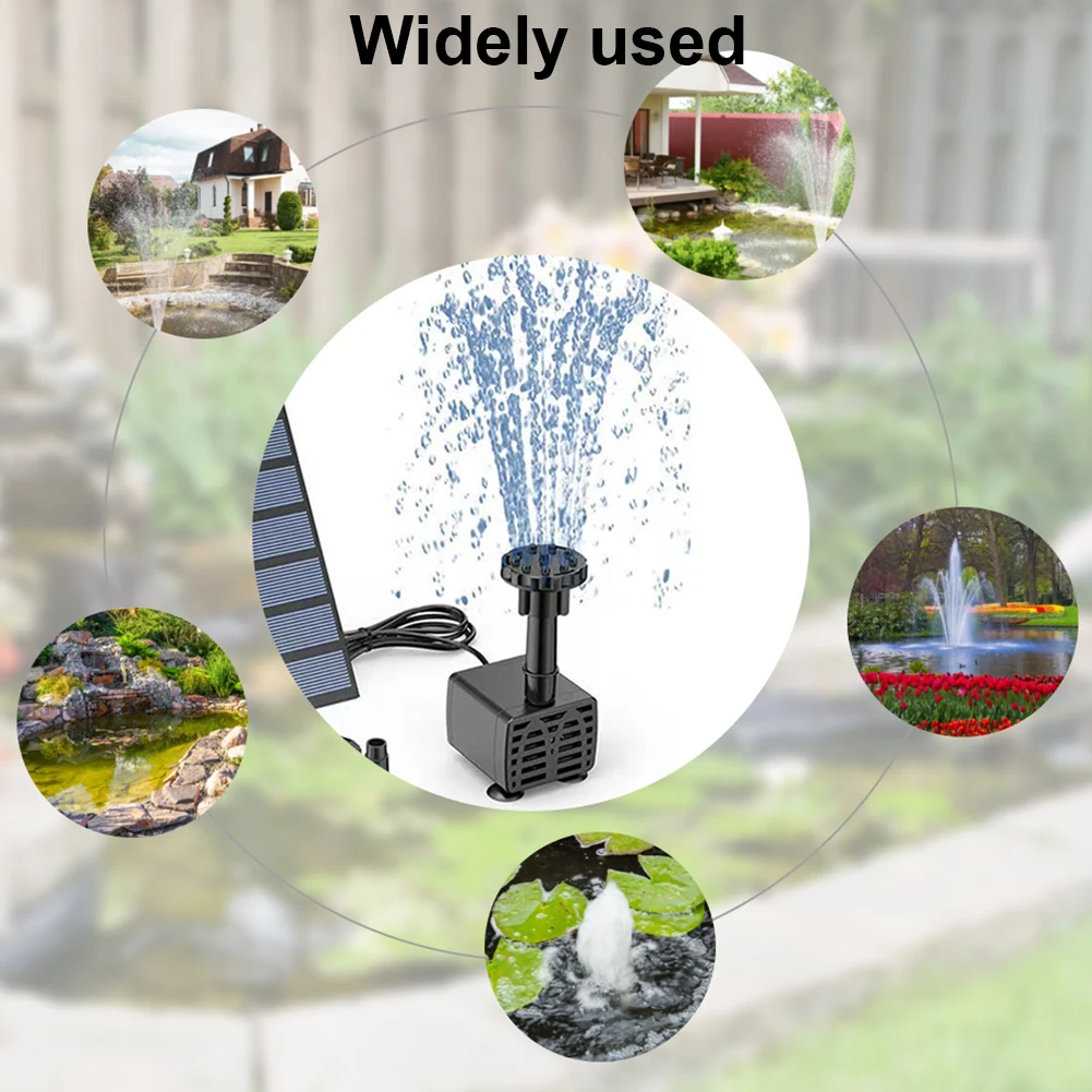 Feature: 1. Solar-powered: This solar power fountain submersible is driven by a solar panel, making it a sustainable and eco-friendly choice for your garden or pond. 2. Efficient Design: The high-efficiency monocrystalline solar panels and new brushless submersible pump ensure quick start-up, high efficiency, and stable performance. 2. Efficient Design: The solar fountain pump floats on water, eliminating the need for any external power source or complicated installation process. It is simple to use and move around. 4. Versatile Application: The solar-powered fountain is perfect for enhancing the aesthetic of gardens, bird baths, small ponds, and adding oxygen circulation to water bodies. It is also great for use in rock gardens and fountains. 5. Easy Installation: With no need for electricity, this solar water fountain is incredibly easy to install. As long as it is exposed to sunlight, it will start working immediately. Specification: Origin: Mainland China Model Number: Solar Fountain Pump Material: ABS+solar panel Size: 11x11cm/4.3X4.3inch Solar panel voltage: 7V solar panel Power: 1.5W Solar panel size: 110mm Water pump voltage: DC 7V Water pump power: 1.2W Maximum lift: 120cm/47.2 Maximum flow rate: 200L/H List of accessories: nozzle x 6 different types of nozzles and nozzle bases x 1, adapter x 1, Instructions x 1 Maximum spray height: 70cm/27.5inch Note: ![]()