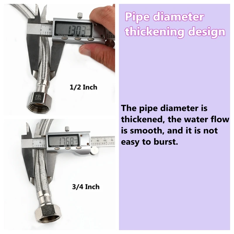 1 PC 1/2, 3/4 Inch 304 Stainless Steel Braided Hose Cold Hot Water Pipe Toilet Faucet Connection Pipe Garden Water Connection