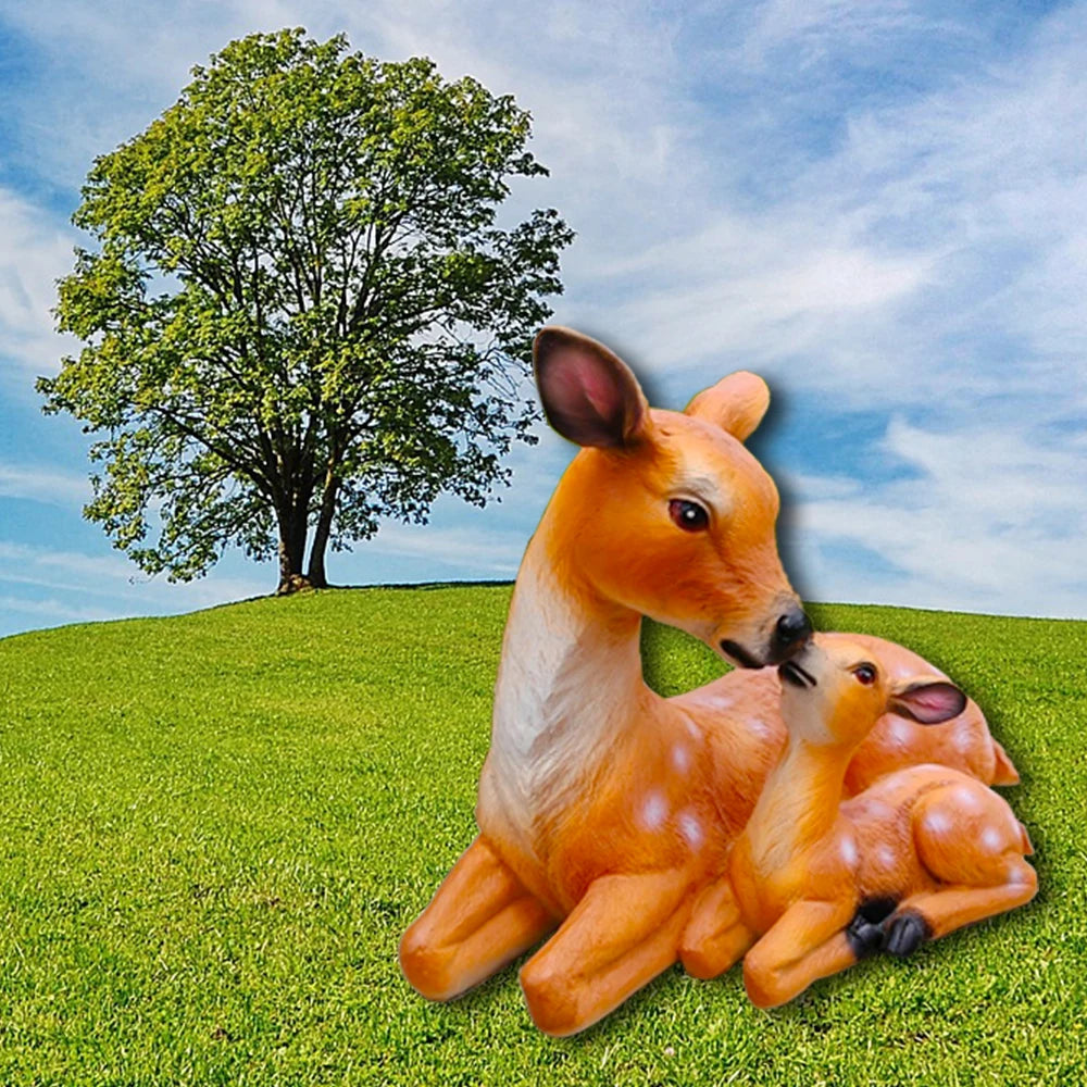 1 Set Resin Deer Figurine For Garden, Lifelike Fawn And Doe Sculpture, Outdoor Lawn Ornament, Durable Yard Statue Decor