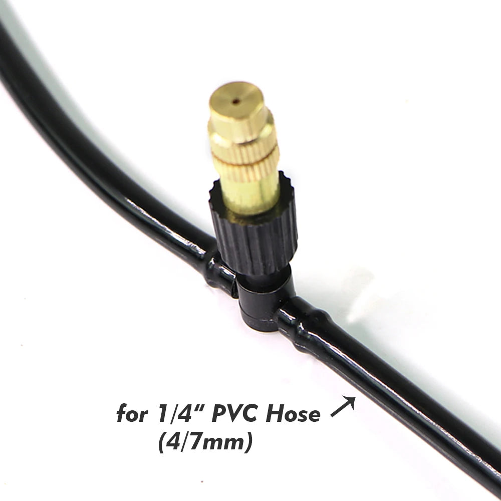 -For this type of tee mist nozzle, it connects 4/7mm hose (inner diameter 4-5mm) or called 1/4'' tubing. The nozzle is adjustable, so that it can reach best mist effect after adjustment.