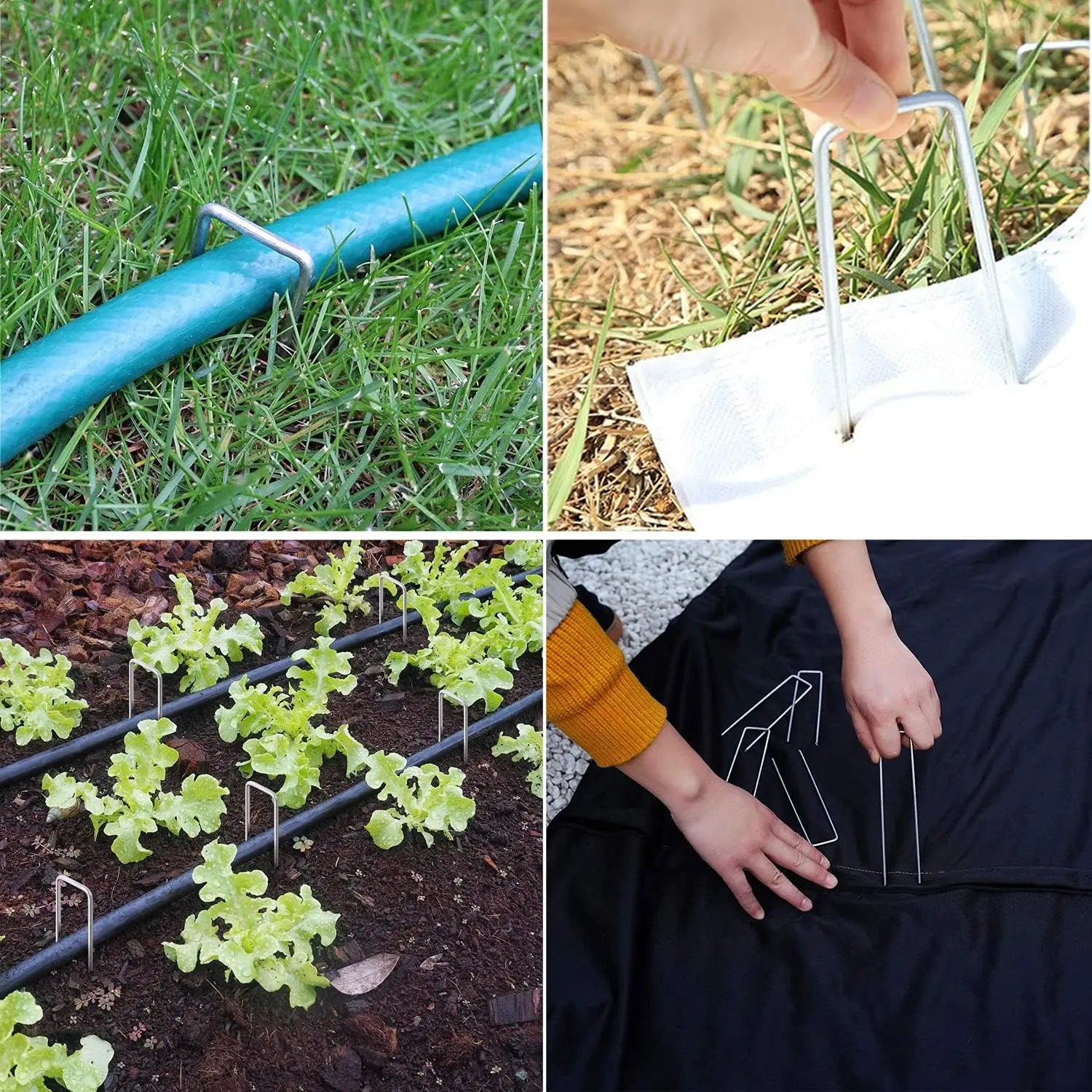 100/10pcs Metal Garden Stakes U-Shape Landscape Staple Ground Nail Fence Film Tents Securing Pegs Sod Pins Gardening Tools
