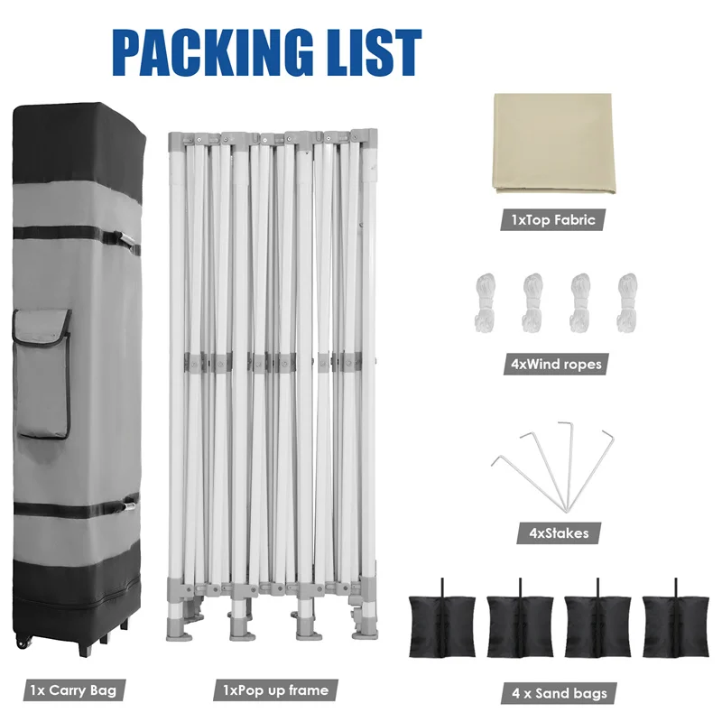 [ & - ] The HOTEEL 10x30 canopy with sidewalls is easy to set up by 3-4 people in 3 minutes, no extra tools required. It comes with a portable 600D Oxford fabric bag for convenient transport and storage. Fits easily in your car trunk for outdoor use. We provide a 365-day after-sellings warranty. For any queries during installation or use of our heavy-duty canopy, please contact us.