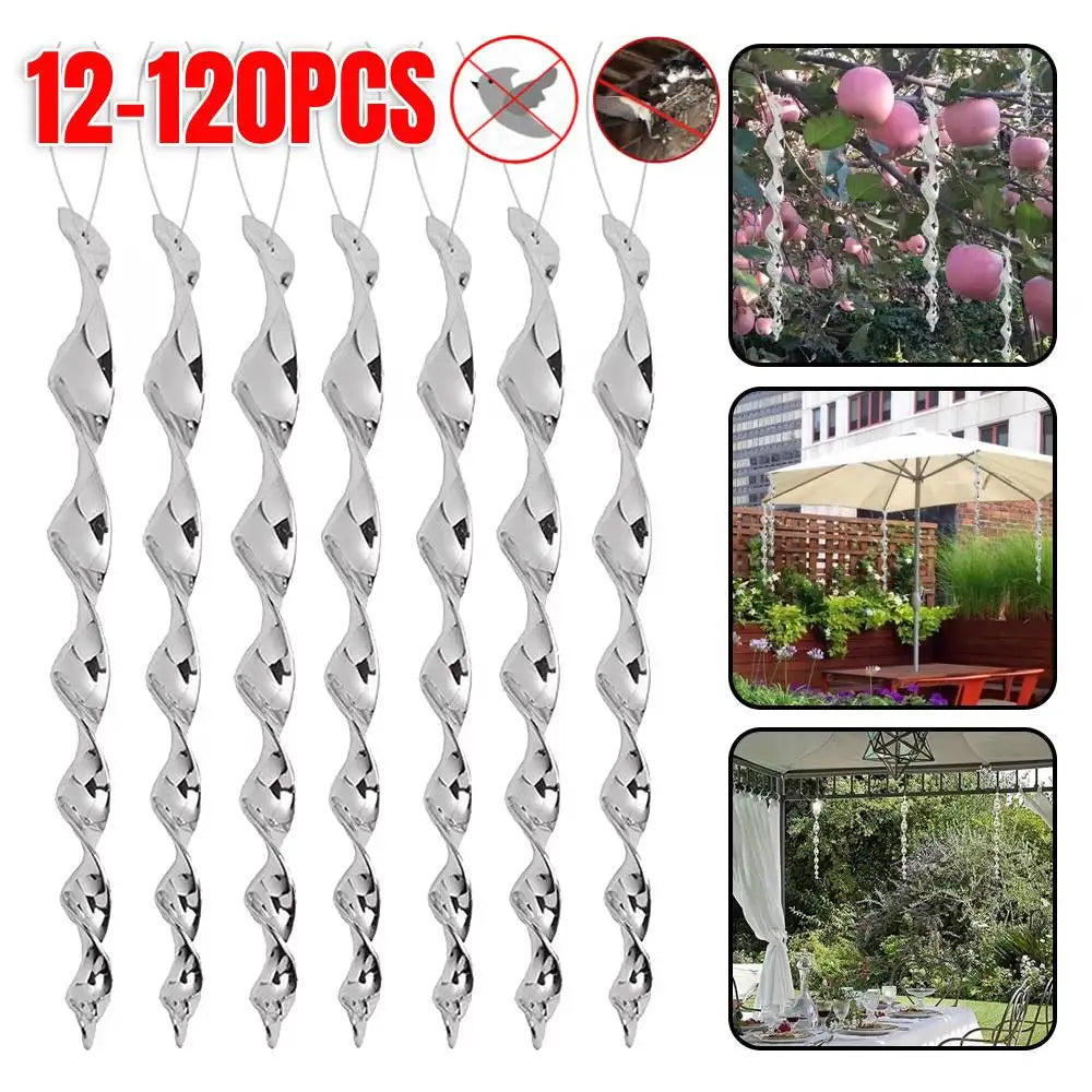 12-120pcs Bird Repellent Reflective Rods 30cm Scare Birds Repeller Wind Spiral Rotating Rod Hanging Ornaments Home Garden Decor