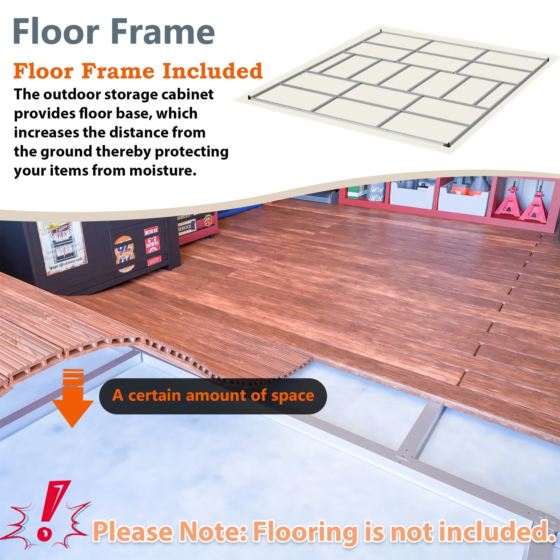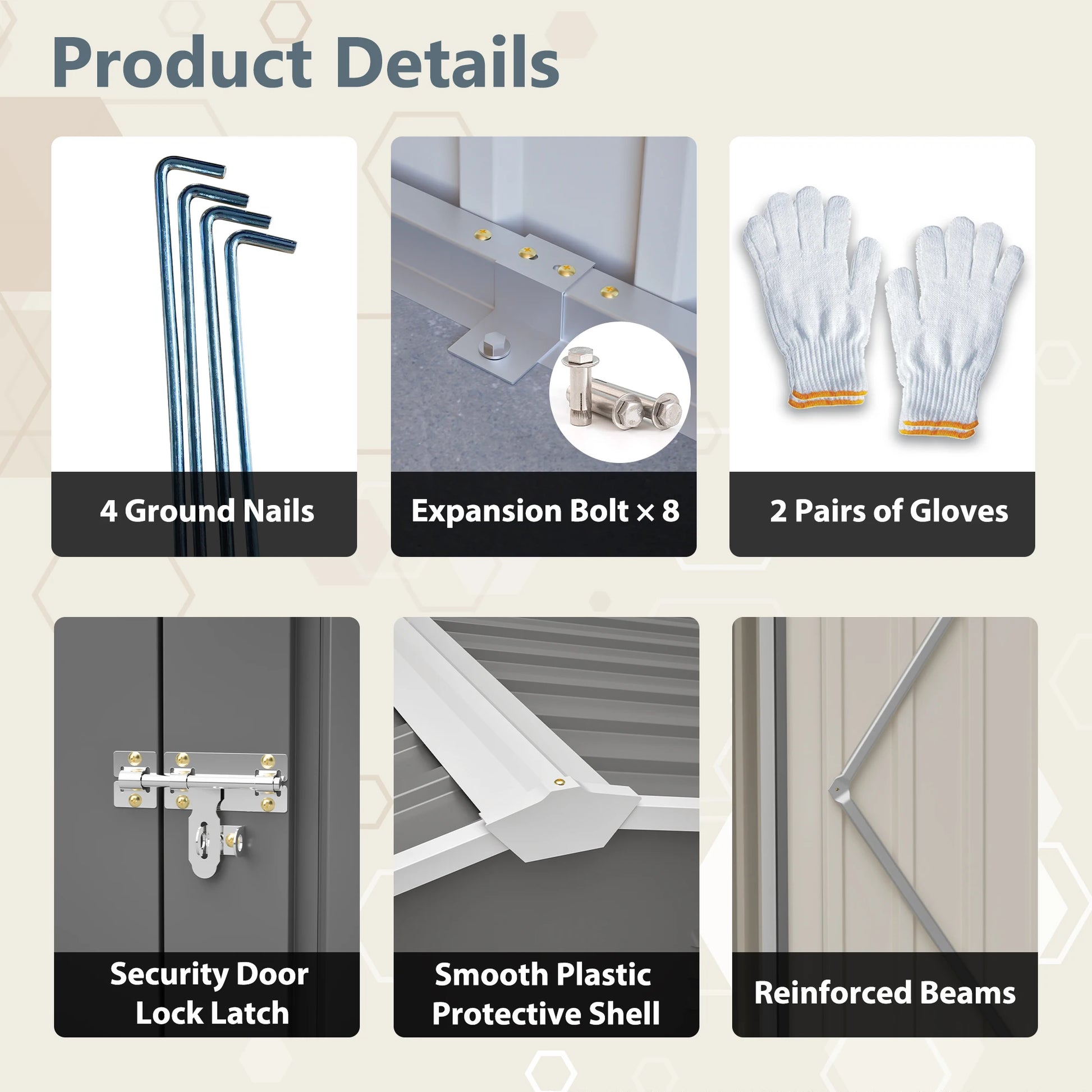 12x14FT Metal Outdoor Storage Shed, Lockable Double Doors, Waterproof Garden Tool House, Light Gray