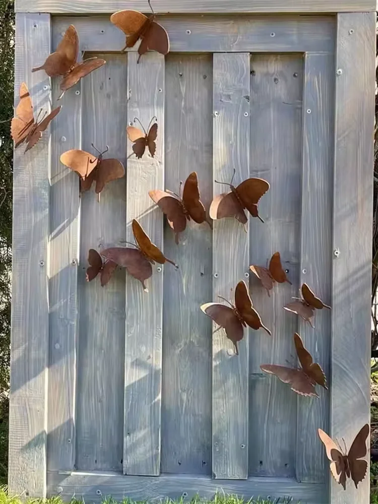 15 Pcs natural rusted butterfly outdoor decorative crafts, metal rusted courtyard wall outdoor decoration, to bring a unique natural atmosphere to your garden.