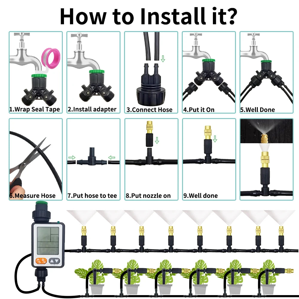 15M-30M Outdoor Misting Cooling System Garden Irrigation Watering 1/4'' Brass Atomizer Nozzles 4/7mm Hose for Patio Greenhouse