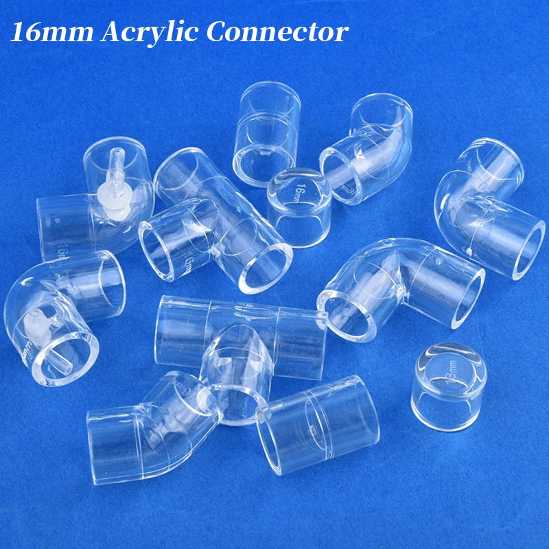 16mm Clear Acrylic Pipe Aquarium Fish Tank 90° Elbow Tee End Plug Connector Plexiglass Water Supply Tube Fittings DIY Connector