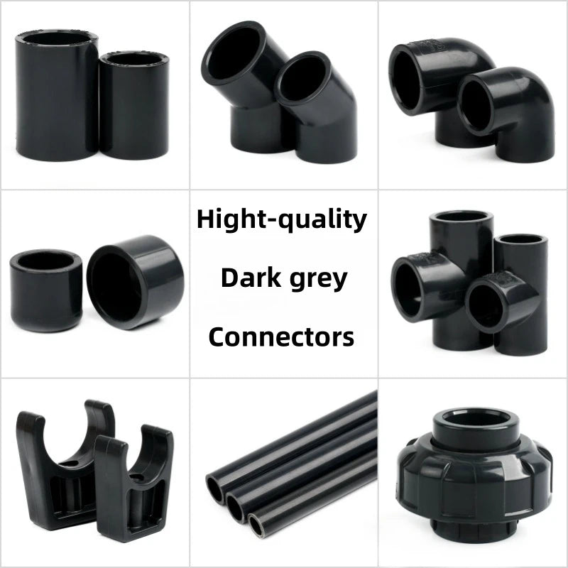 1PC 20~63mm Dark Grey UPVC Pipe Connector Straight Elbow Tee Garden Irrigation DIY Accessories Aquarium Water Tank Supply Joints